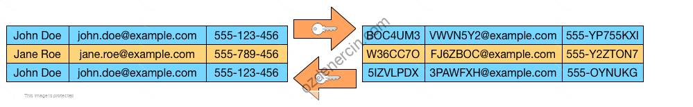 Takma isim ile adlandırma, hassas bir veri alanını sahte bir dizgeye çevirir. Elde edilen dize her zaman aynı giriş için aynıdır, böylece analitik korelasyonlar hala mümkündür. Bu işleme alternatif olarak “veri tokenizasyon” adı verilir.